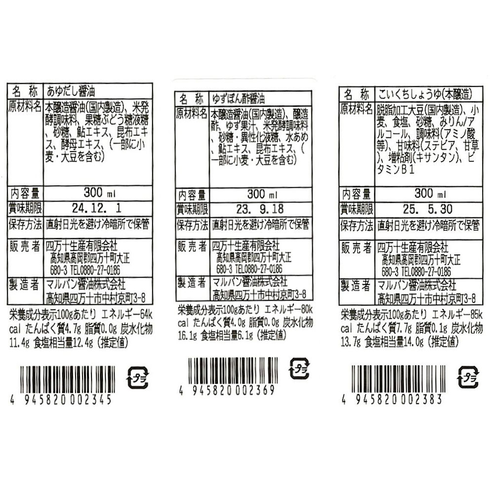四万十味紀行 こだわり醤油300ml3種 / 常温 送料無料 醤油 しょうゆ 詰め合わせ セット ギフト 高知