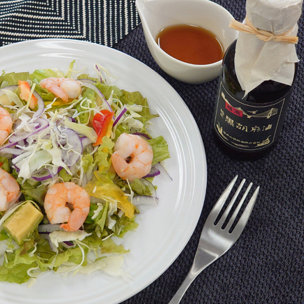 横浜土産として人気の2つをセットにしました。精選した黒胡麻だけを原料に搾油した、純正黒胡麻油は黒胡麻ならではの深いコクとすっきりとした後味が特徴。辣油は香り高い純正胡麻油に唐辛子を加え、じっくりと煮出すことで唐辛子の旨味と辛味を引き出しました。じんわりと広がるような熟成した辛味が特徴です。ラベルには岩井の工場から見える横浜の風景をあしらっています。