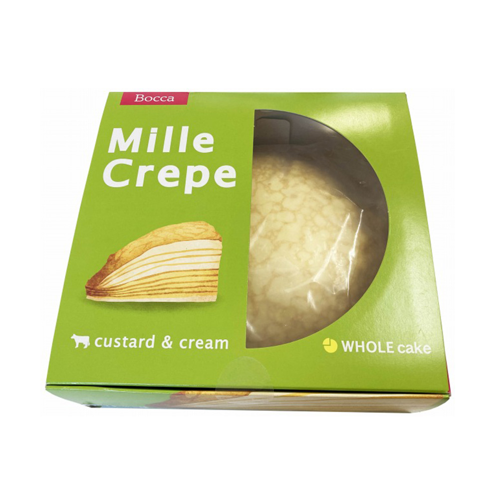 ■原材料名/食品添加物:カスタードクリーム(カスタードクリーム(国内製造)、クリーム、砂糖、その他)、ホイップクリーム(クリーム、砂糖、ラム酒)、クレープ皮(小麦粉、鶏卵、食用こめ油、その他)、スポンジケーキ(砂糖、小麦粉、加糖卵黄(卵黄、砂糖)その他)、ラムシロップ(砂糖、ラム酒)/トレハロース、香料、(一部に乳成分、卵、小麦、ゼラチンを含む)