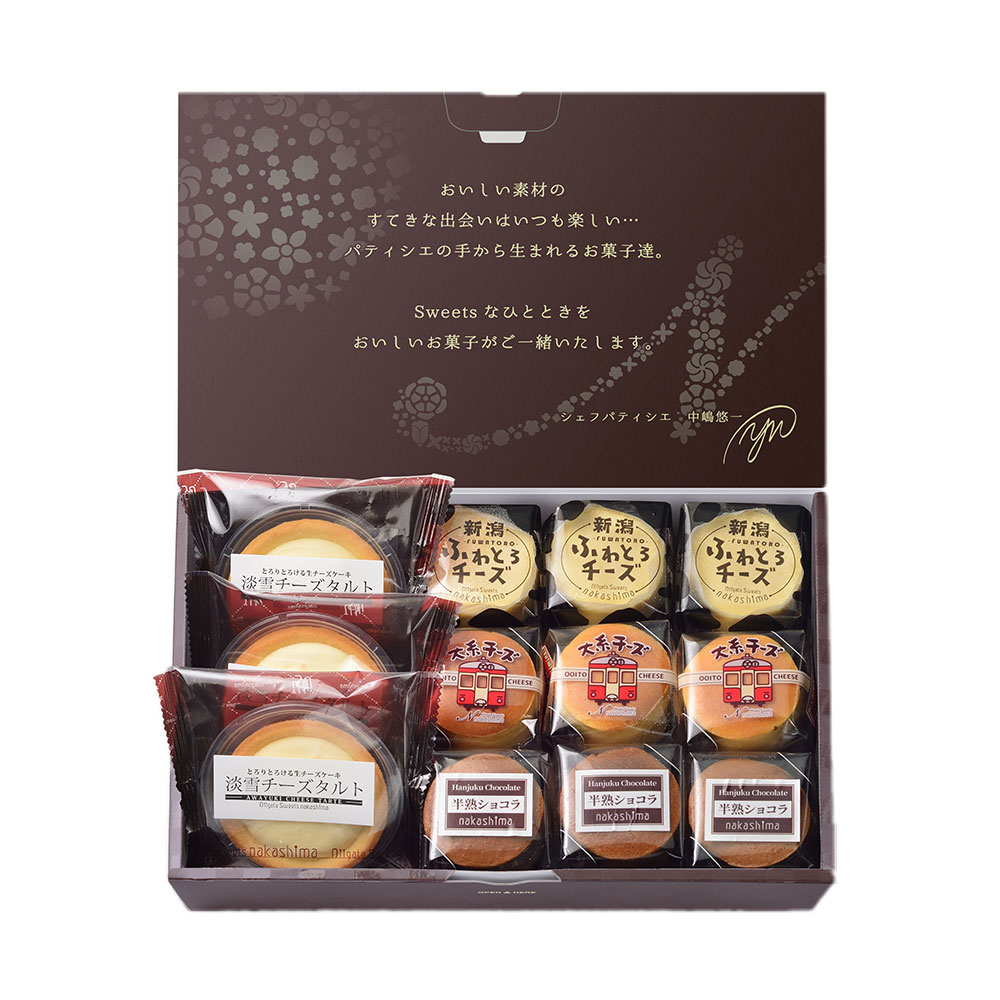 まるで口の中でとけてしまうかのようなやわらかな食感で人気の「大糸チーズ」、濃厚なショコラと優しいチーズのおいしいマリアージュの「半熟ショコラ」、ふわっとしているのにとろっとしている新食感でミルキーな「新潟ふわとろチーズ」、そして香ばしいタルトに生チーズたっぷりと詰め込んだ「淡雪チーズタルト」のバラエティ豊かなスイーツのギフトです。