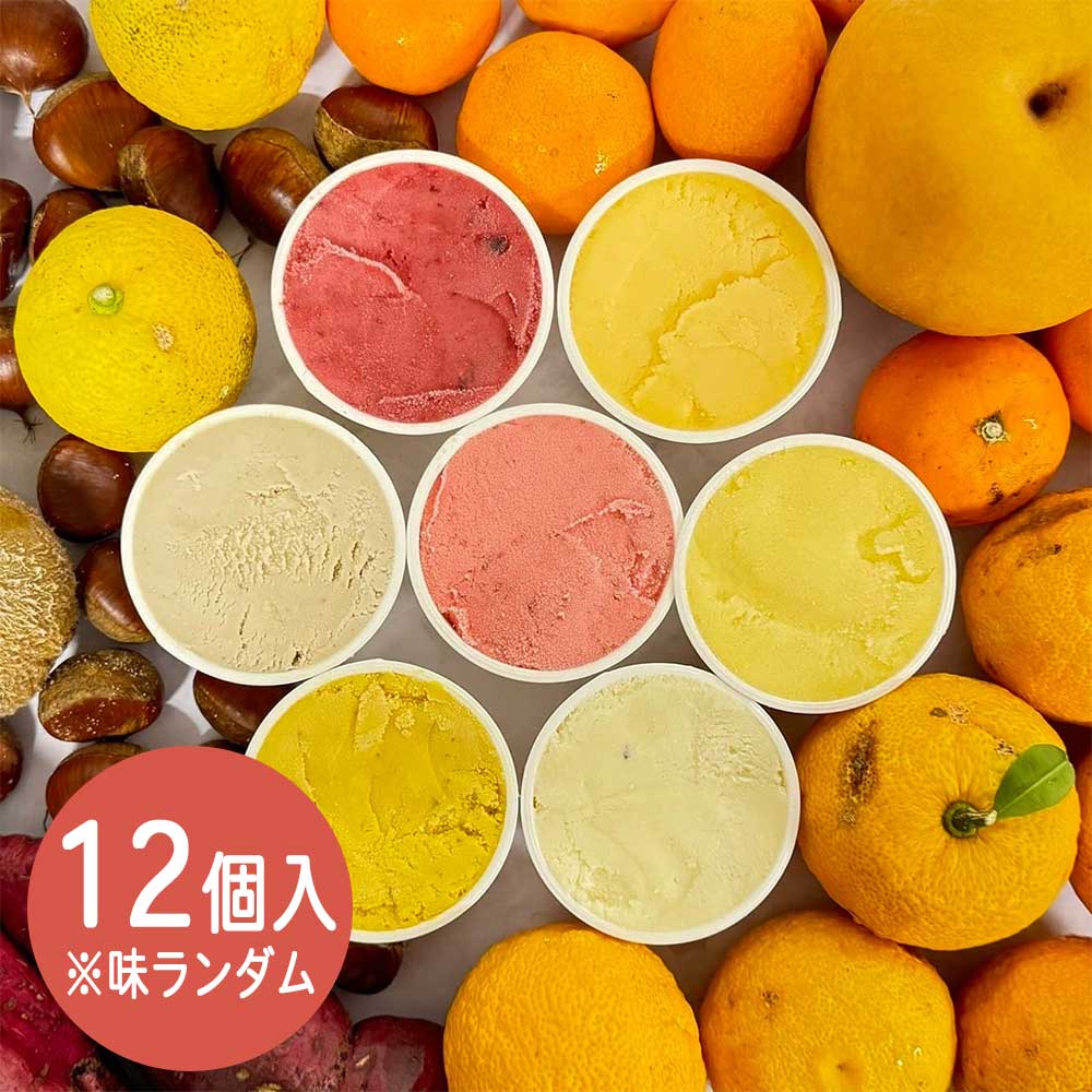 生産者様より廃棄となる果物や野菜を買い取らせていただき、賞味期限のないジェラートへ変えることで食品ロス問題の解決を目指す、当店のオリジナルジェラート12個(ミルク1種×3個、季節のフレーバー3種×3個)入りです。