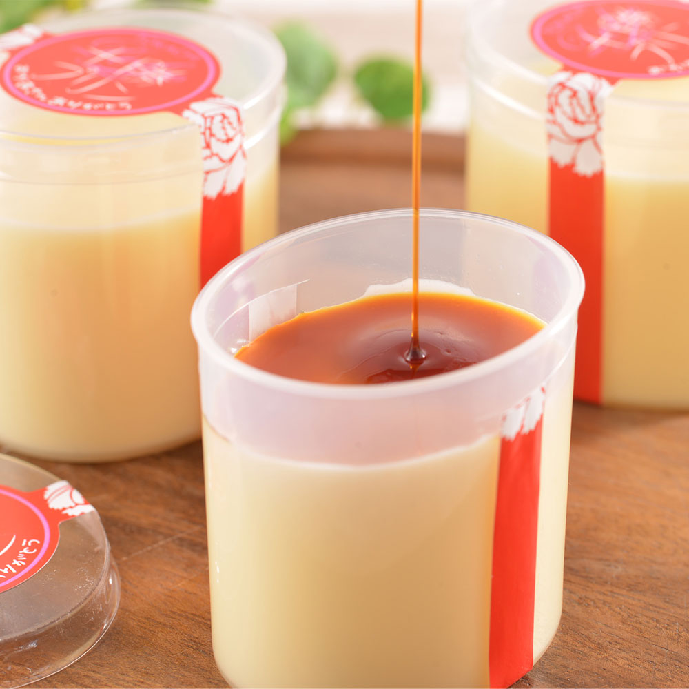 十勝橋本牧場生乳を使用したミルクプリンに苺ソースをつけました。母の日限定パッケージでお届け致します。