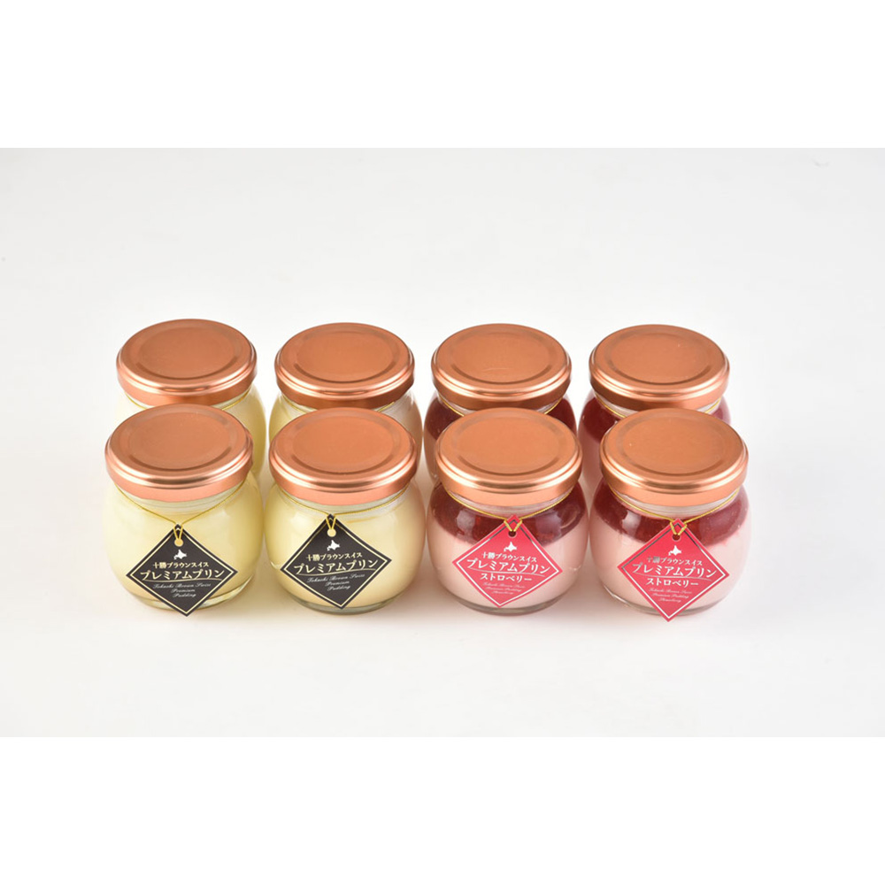 ■規格:十勝プレミアムプリン、十勝いちごプレミアムプリン各80ml×各4