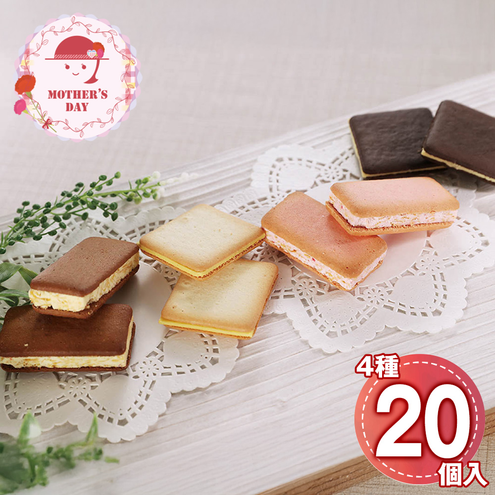 ■規格:苺パフェサンドクッキー4個、プリンアラモードクッキー4個、スイートポテトラングドシャ6個、チョコバナナラングドシャ6個