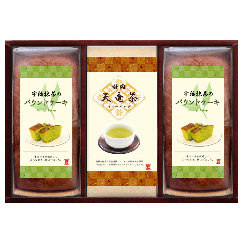 宇治抹茶のパウンドケーキと煎茶のティーバッグの詰合せです。